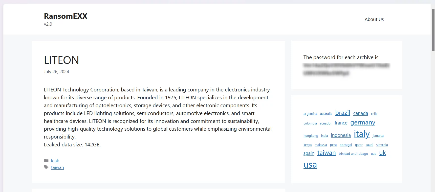 On their website, Ransomexx published details regarding the attack, including the size of the stolen data, amounting to 142GB. Furthermore, the group threatened to release sensitive information unless Liteon paid a ransom.