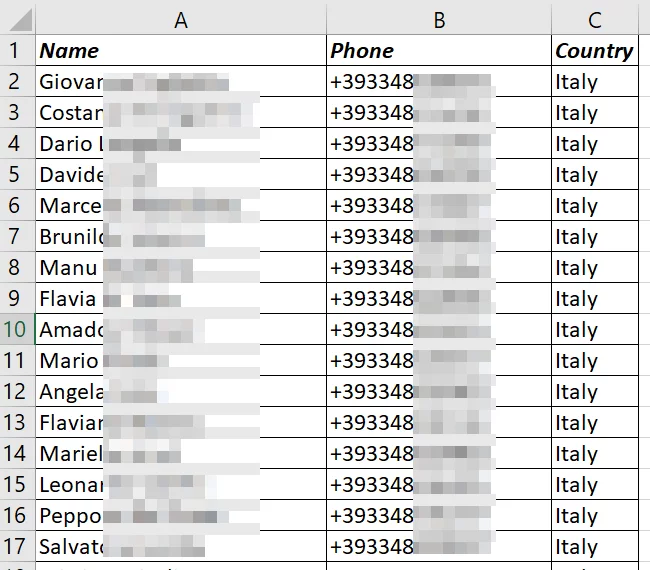 Abbiamo contattato il venditore per un sample, il quale ci ha fornito circa 5000 record di persone italiane, con accanto il numero di telefono.