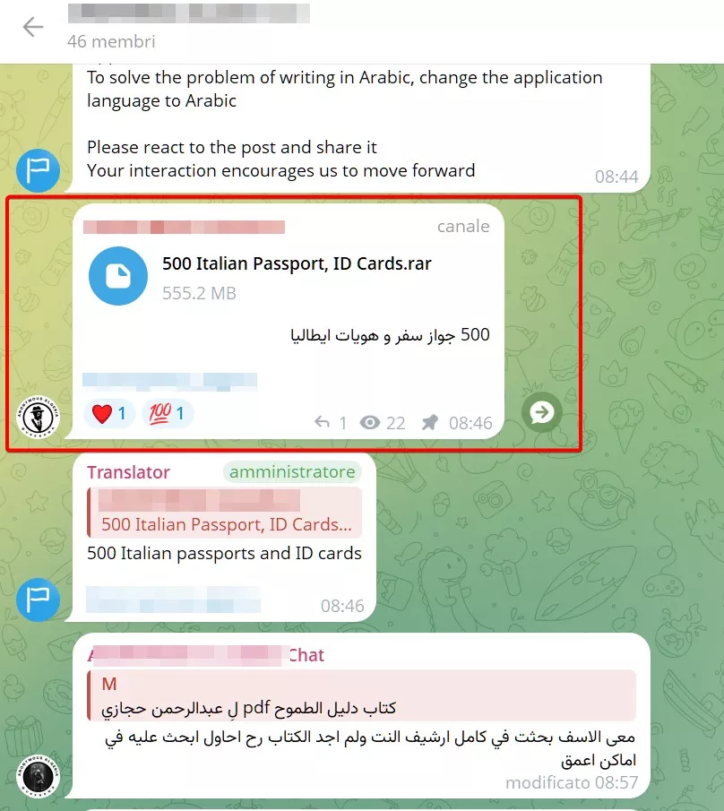 Il gruppo collettivista Anonymous Algeria, in una recente attività sui loro canali Telegram, ha pubblicato un archivio compresso, contenente documenti di identità di italiani.