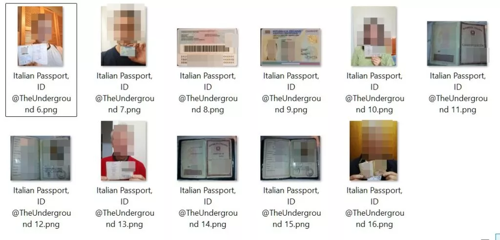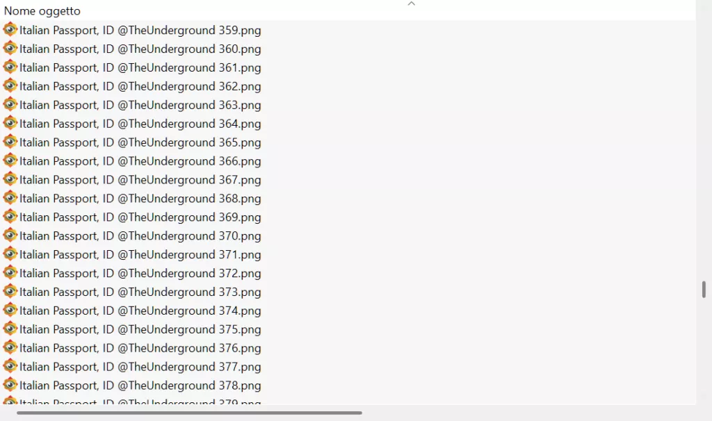 Si tratta di un file di oltre 500 MB che contiene immagini di dati personali appartenenti a cittadini italiani. L’aspetto inquietante di questa fuga non è solo la presenza di scansioni di documenti ufficiali, ma come questi “pacchetti” informativi risultino completi.