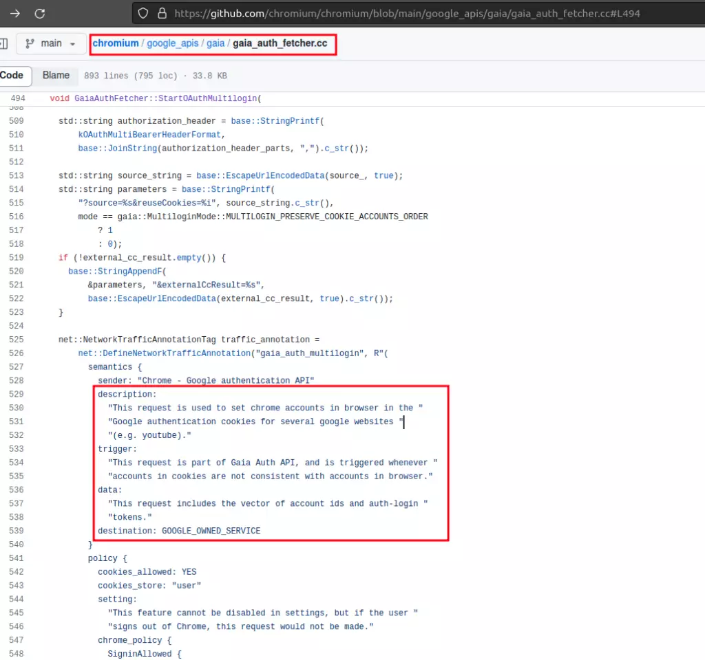 “MultiLogin” è un meccanismo interno progettato per sincronizzare gli account Google tra diversi servizi. Tale meccanismo garantisce che gli stati dell’account nel browser corrispondano ai cookie di autenticazione di Google.