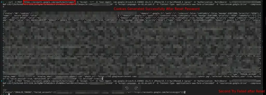 Tale attacco permette di compromettere gli account Google. Questo metodo consente di mantenere sessioni valide rigenerando i cookie, anche dopo aver modificato l’indirizzo IP o la password.