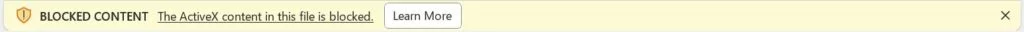 Quando si aprono documenti con controlli ActiveX, nella parte superiore della finestra verrà visualizzata una notifica che informa che il contenuto ActiveX nel file è stato bloccato, insieme al pulsante “Ulteriori informazioni”.