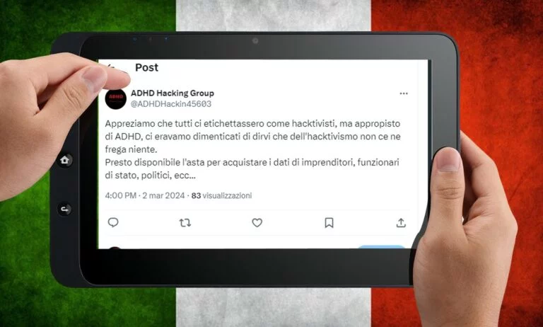 La riattivazione è stata accompagnata da un messaggio provocatorio: “Apprezziamo che tutti ci etichettassero come hacktivisti, ma a proposito di ADHD, ci eravamo dimenticati di dirvi che dell’hacktivismo non ce ne frega niente. Presto disponibile l’asta per acquistare i dati di imprenditori, funzionari di stato, politici, ecc…”