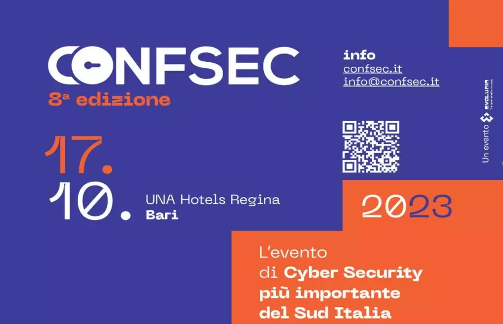 ConfSec, giunto all’ottava edizione, si terrà il 17 ottobre presso il Centro Congressi di UNAHOTELS REGINA a Bari ed è rivolto a chiunque interessi il tema CyberSecurity, che sia un CEO o un tecnico. L’evento è ideato e organizzato da EVOLUMIA, società di consulenza leader nel meridione d’Italia sulla cyber security.