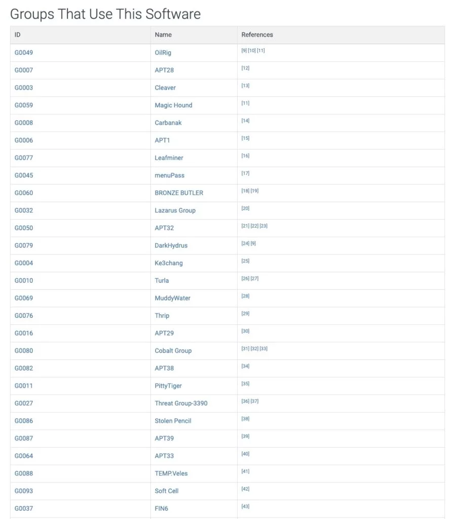 Questo elenco è un vero e proprio “Who’s Who” di spaventosi attori delle minacce coinvolti in attacchi mirati avanzati: Oilrig, APT28, Lazarus, Cobalt Group, Turla, Carbanak, FIN6 e APT21 solo per citarne alcuni