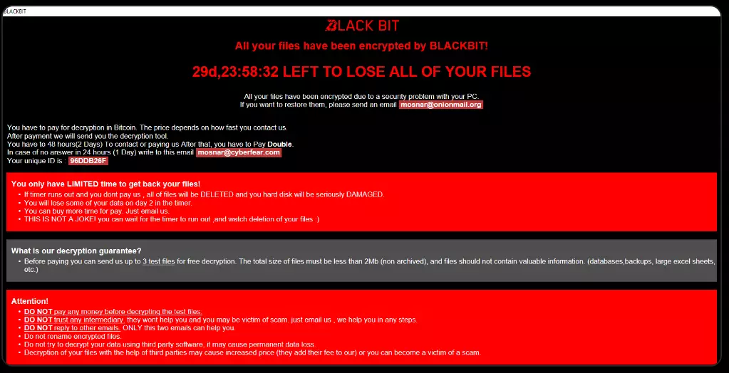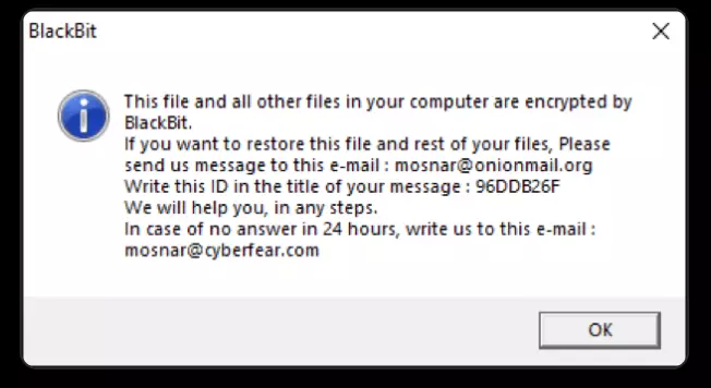 In Russia, insieme a LokiLocker, gli aggressori hanno utilizzato un nuovo ransomware “correlato” con il marchio BlackBit per attaccare le medie e piccole imprese. In termini di funzionalità, è quasi identico a LokiLocker, la differenza principale è solo nella denominazione: l’estensione viene utilizzata per i file crittografati .blackbit.