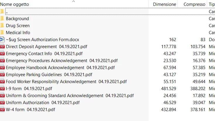Sono presenti inoltre all’interno della lista, dei tasti sulla destra dove è possibile scaricare un archivio in formato zip afferente a quella persona, con i dati specifici richiesti.
