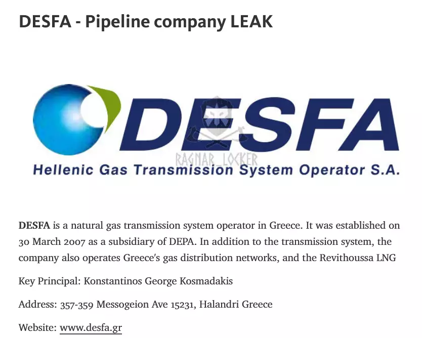 Venerdì, il gruppo Ragnar Locker ha aggiunto DESFA all’elenco delle vittime sul suo sito web, indicando che nessuno aveva risposto alle sue richieste.