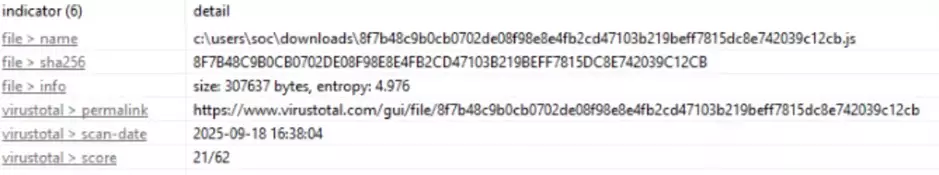 L’analisi è quindi partita da un campione JavaScript, rivelando una catena di infezione complessa che impiega PowerShell come stadio intermedio e culmina con l’esecuzione “fileless” del payload finale. L’attore della minaccia ha implementato molteplici tecniche di offuscamento ed evasione, e ha sfruttato un servizio legittimo (Google Drive) per ospitare il payload, rendendo il rilevamento basato sulla rete più difficile.