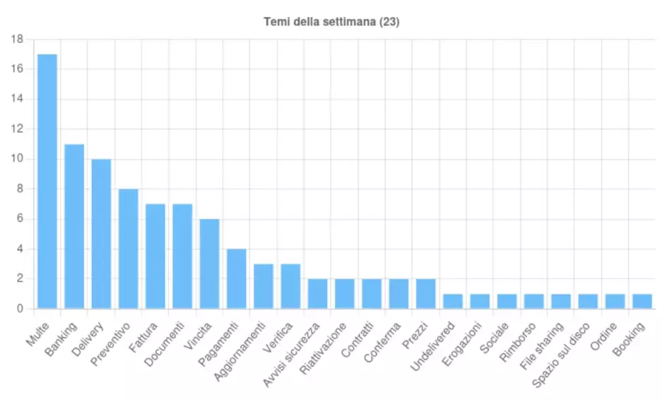 Individuati 23 temi, sfruttati per diffondere campagne malevole in Italia, nella settimana del 20-26 Settembre