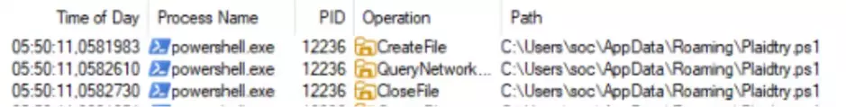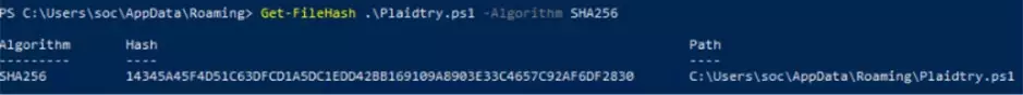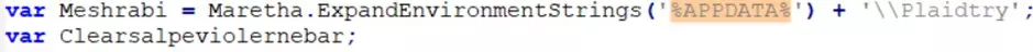 La logica principale dello script è un ciclo di assemblaggio: decodifica e concatena centinaia di piccole stringhe per costruire in memoria il payload della fase successiva, uno script PowerShell, che verrà salvato nella cartella %APPDATA% con il nome di “Plaidtry”.