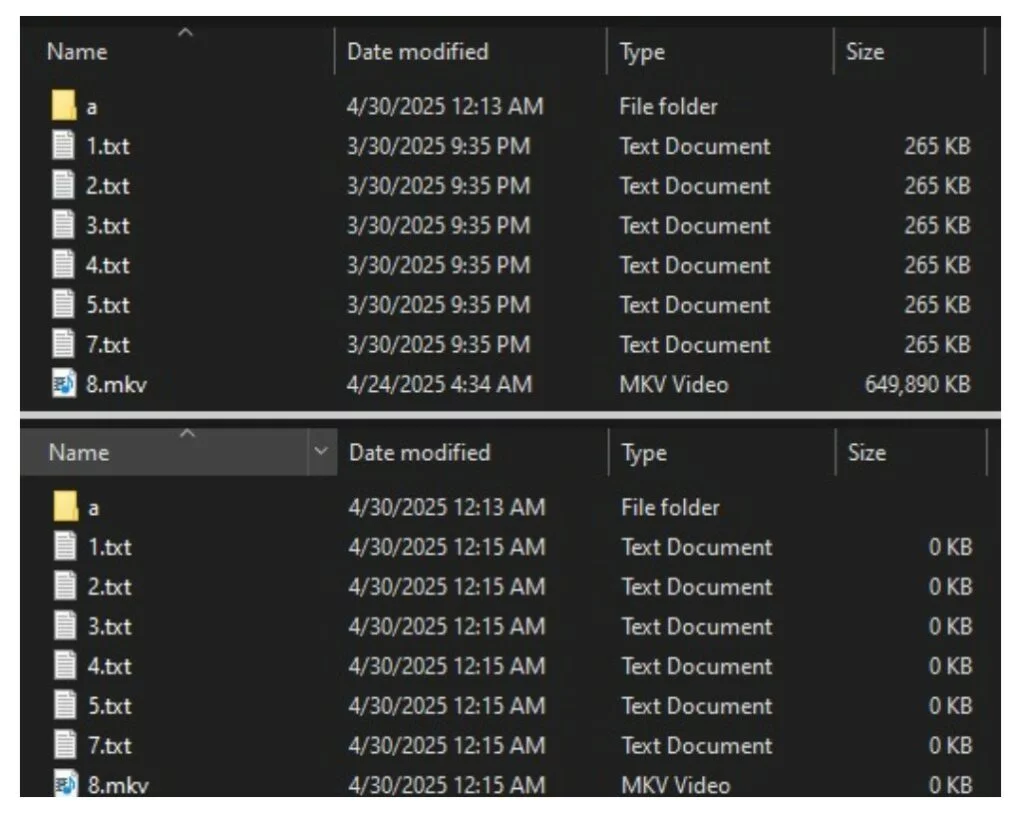 Il wiper viene attivato utilizzando il parametro della riga di comando /WIPEMODE, che richiede l’autenticazione basata su chiave. Una volta attivato, tutto il contenuto dei file viene cancellato, le loro dimensioni vengono ridotte a 0 KB e i nomi e la struttura rimangono intatti. In altre parole, la vittima sarà ancora in grado di visualizzare tutti i file, ma il loro contenuto verrà distrutto in modo irreversibile e il ripristino sarà impossibile.
