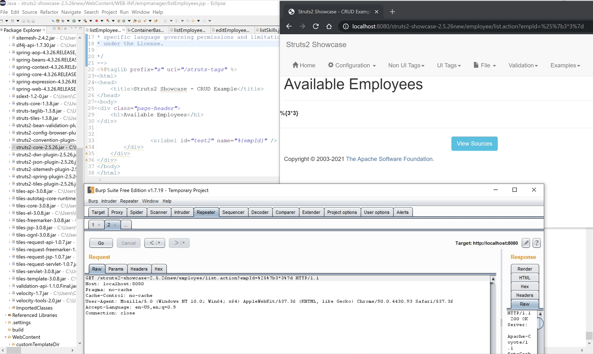 Il codice sul backend esegue una singola valutazione OGNL per recuperare gli input passati dai parametri GET. O almeno è così che dovrebbe funzionare. Esiste una vulnerabilità quando quel valore definito dall’utente finisce per ricevere la valutazione OGNL eseguita due volte.