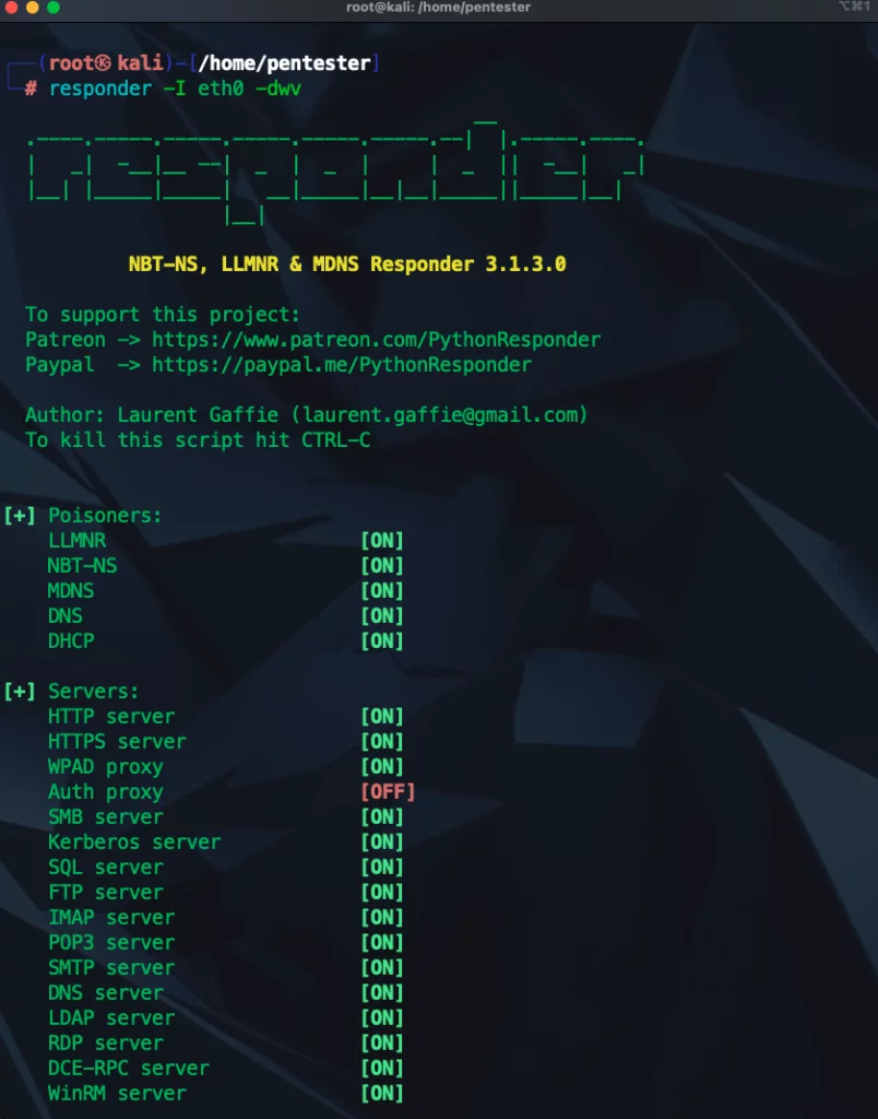 Un dispositivo malevolo si inserisce nella rete locale e monitora il traffico LLMNR sulla rete, se stiamo conducendo un pentest, é utile lanciare lo strumento che useremo “responder” al mattino appena la maggior parte delle persone che lavorano nell’azienda che ci ha ingaggiati o subito dopo pranzo, quando le perse tornano al lavoro dopo la pausa, al fine di avere più traffico a disposizione da poter intercettare .
