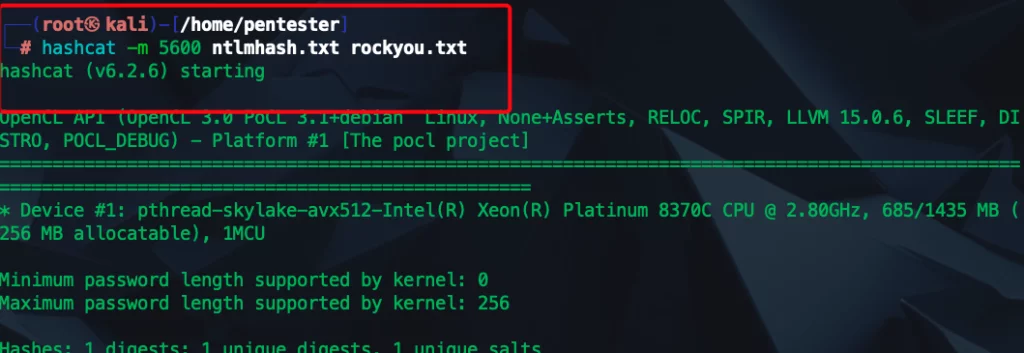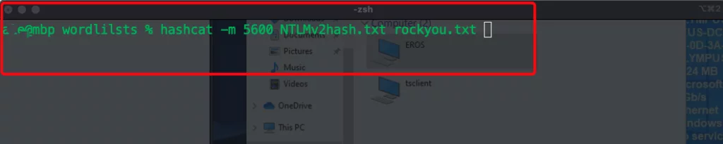 hashcat -m 5600 ntlmhash.txt rockyou.txt