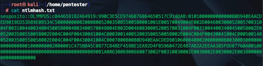 Tale hash (dipendendo dalla complessità della password) può essere craccato con uno strumento come Hashcat od addiritura utilizzato cosi com’è con un attacco “pass the hash”