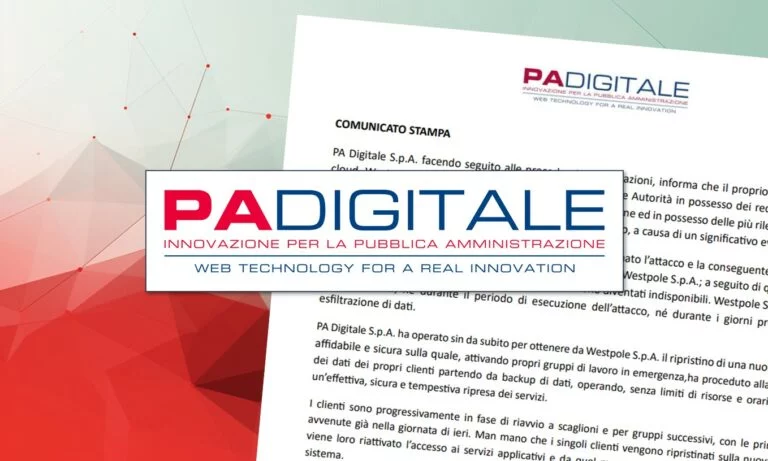 PA Digitale scrive il 13/12 pomeriggio a Red Hot Cyber, chiedendo la pubblicazione del loro comunicato stampa, che pubblichiamo ringraziando l’azienda per la collaborazione e l’impegno nella diffusione trasparente di informazioni cruciali sulla recente crisi di sicurezza informatica.