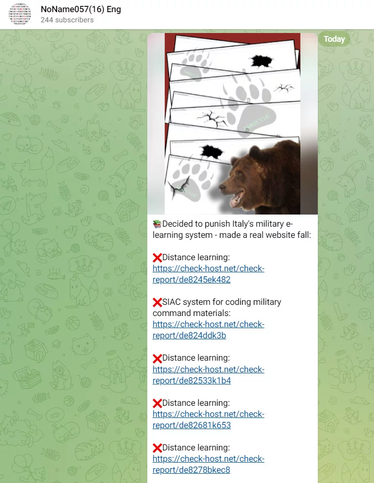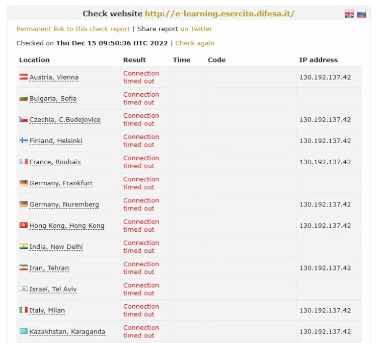 📚Abbiamo deciso di punire il sistema di e-learning militare italiano - ha fatto crollare un vero sito web.E una lunga lista di link a check-host, un sito che consente di visualizzare la raggiungibilità di una url da diversi posizioni nel mondo.