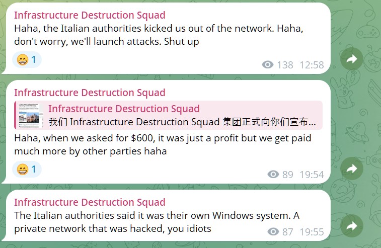 Un elemento rilevante riguarda la strategia comunicativa del gruppo. Sul loro canale hanno pubblicato uno screenshot dell’articolo de Il Gazzettino, che riportava le analisi di Red Hot Cyber. Questo dettaglio ci consente di comprendere che il gruppo monitora attentamente la copertura mediatica, e utilizza i contenuti per rafforzare la credibilità.