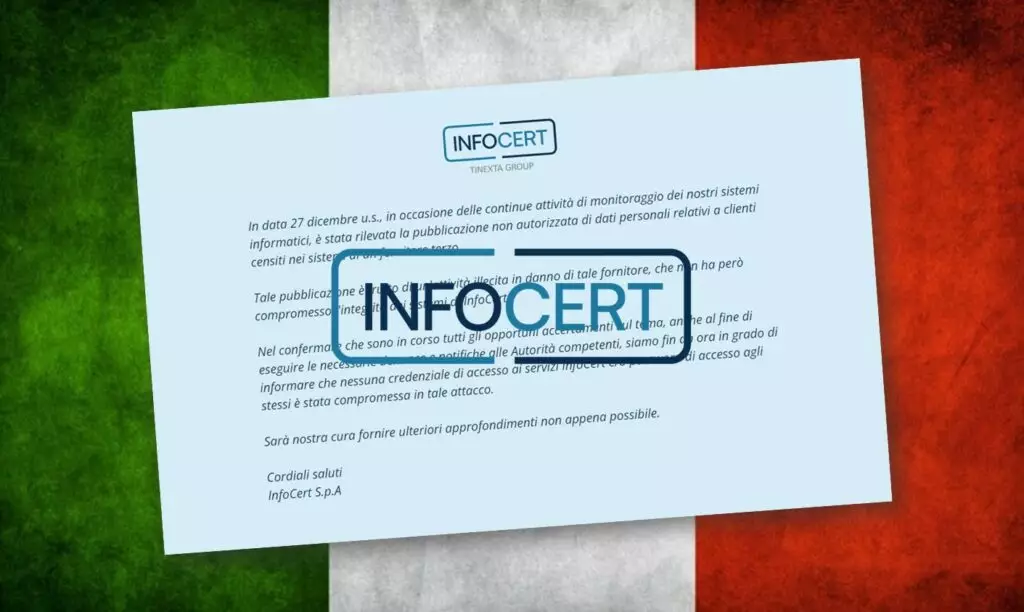 Nel comunicato, InfoCert ha dichiarato di aver rilevato la pubblicazione non autorizzata di dati personali riconducibili ai propri clienti, specificando che l’origine dell’incidente è riconducibile a un fornitore terzo.