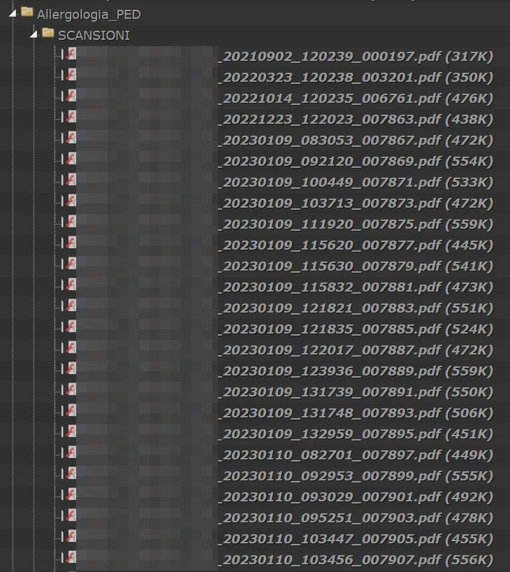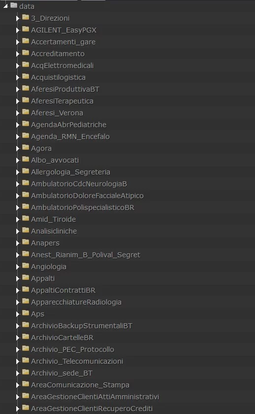 Rhysida questa notte pubblica 612GB complessivi pari a 900.128 file esfiltrati dalle infrastrutture IT dell’azienda sanitaria. Accedendo al directory listing (l’alberatura dei file presenti sul loro sito), la quantità di informazioni è veramente ingente e scaricarli tutti sarebbe una impresa difficile, pertanto abbiamo proceduto scaricando il file “ALL_FILES” che di fatto è un tree-view dei file esfiltrati per indirizzarci nelle analisi.