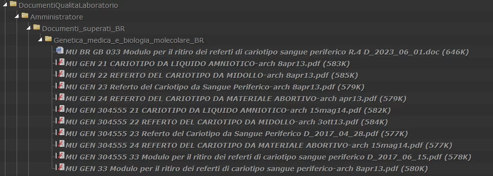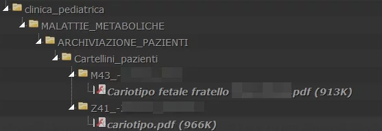 Andando ad analizzare il file, abbiamo una serie di informazioni riguardanti analisi genetiche e Cariotipo, anche se sembra si tratti di template utilizzati dall’ospedale e non di referti clinici.