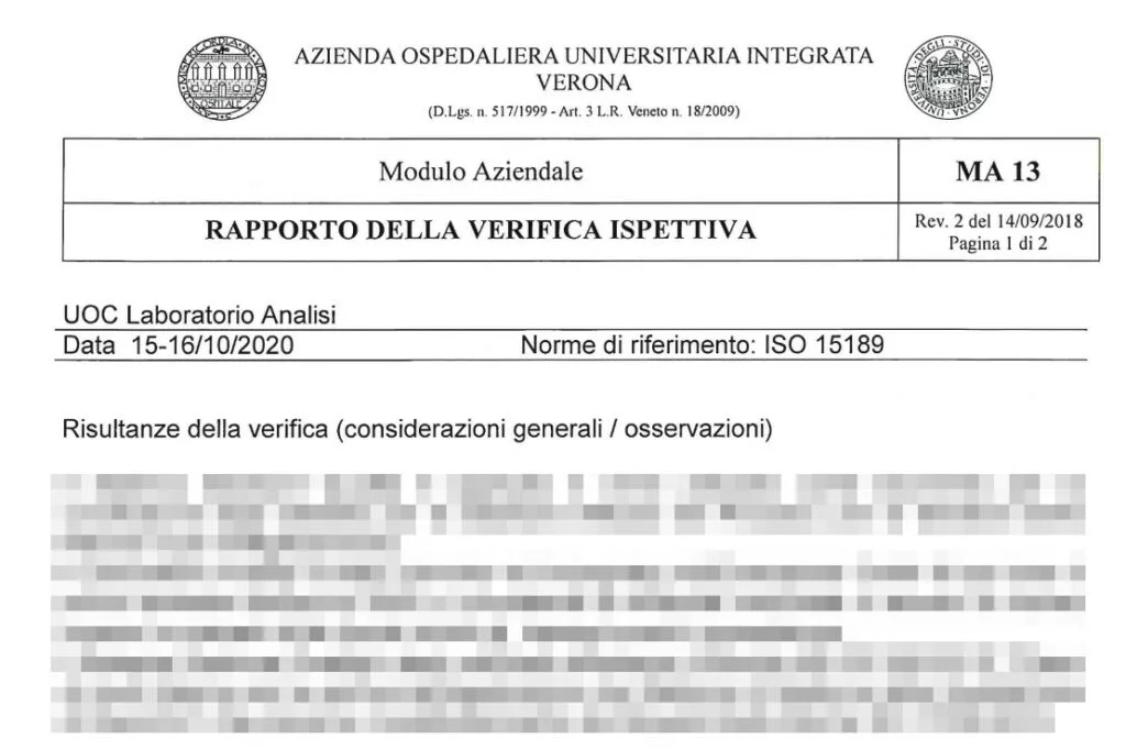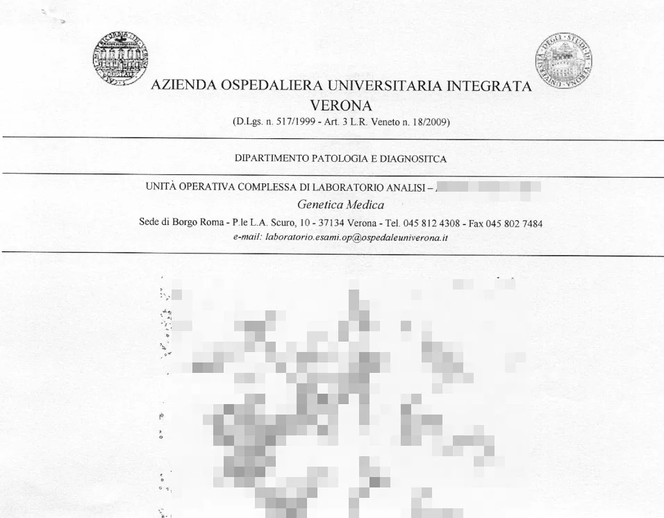 Referto genetico dell’Ospedale di VeronaReferto genetico proveniente dalla ULSS6 contenuto nelle informazioni sottratte dall’Ospedale di Verona.