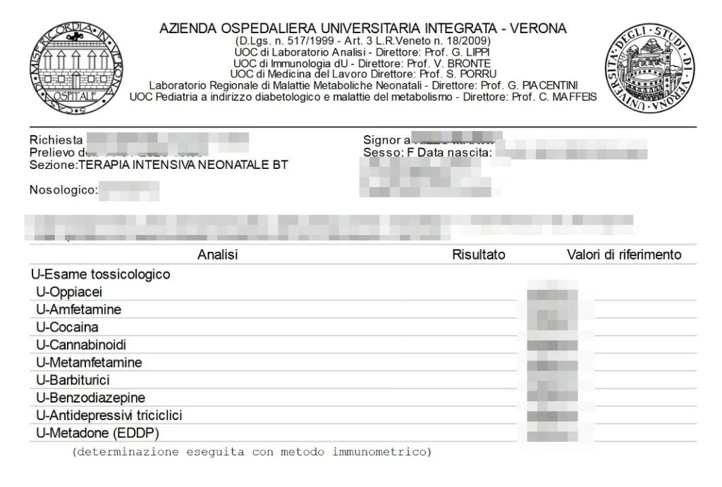 Sono presenti diverse analisi cliniche che partono dal 2023 fino ad anni passati. Tali analisi risultano afferenti al laboratorio dell’azienda ospedaliera universitaria integrata di Verona ma anche da altri laboratori di analisi sia pubblici che privati.