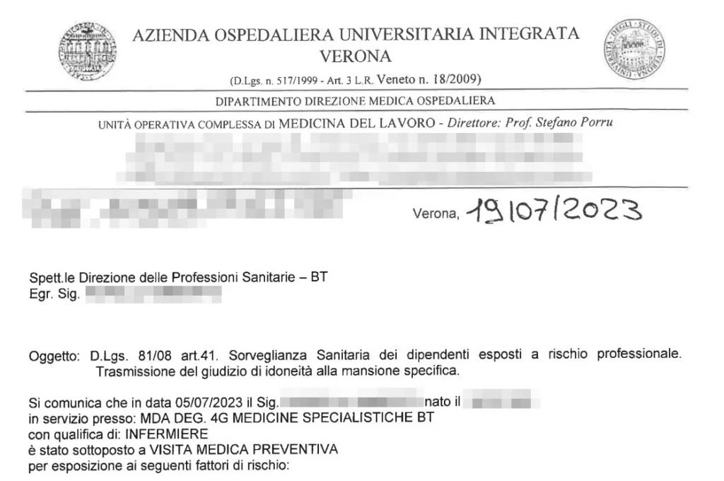 Abbiamo rilevato moltissima documentazione afferente alle idoneità sul lavoro e sui rischi professionali datate 2023.