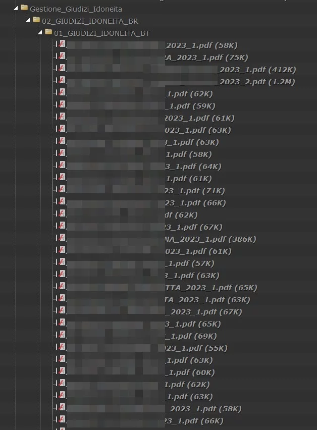Abbiamo dato una occhiata anche alla gestione delle password. Se da un lato abbiamo trovando dei file PDF protetti da password, contenenti presumibilmente credenziali di accesso, da un altro abbiamo trovato utenze e password predicibili banali, alcune tra queste contenente le TOP10 password più conosciute come “12345678”.