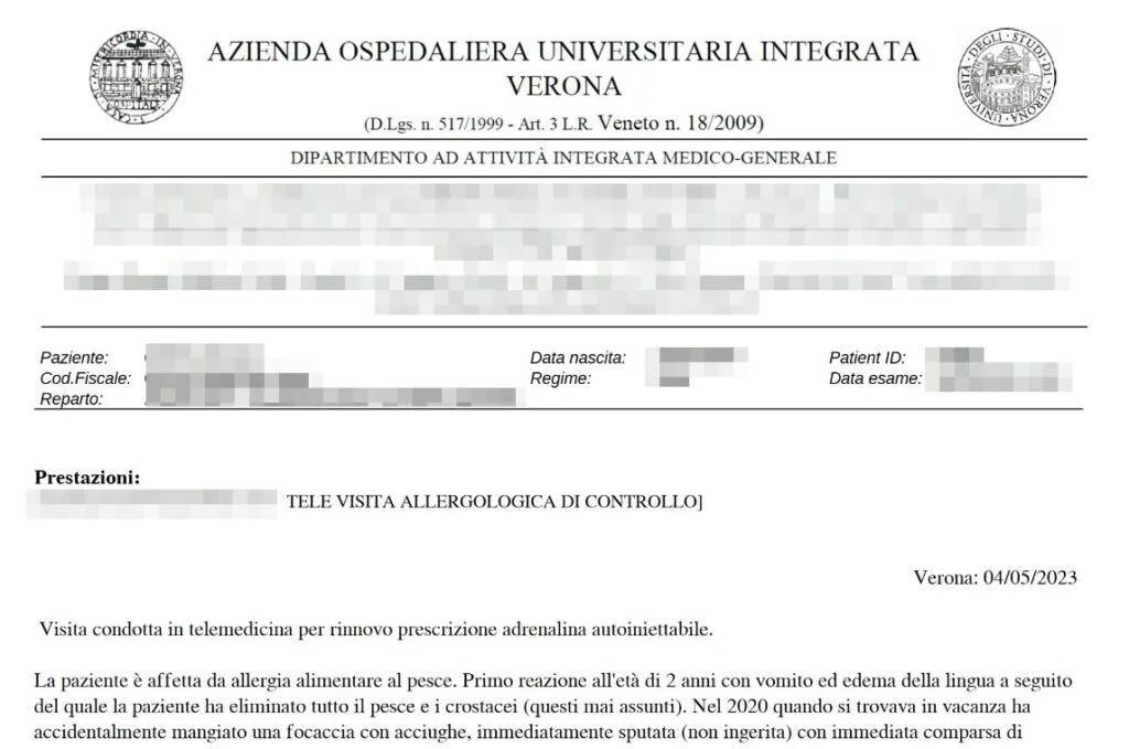 Sono altresì presenti analisi genetiche provenienti da altri laboratori, probabilmente forniti dai pazienti (come ad esempio della ULSS6), ma anche realizzati all’interno dell’Università di Verona, anche se non viene specificato il nome del paziente.