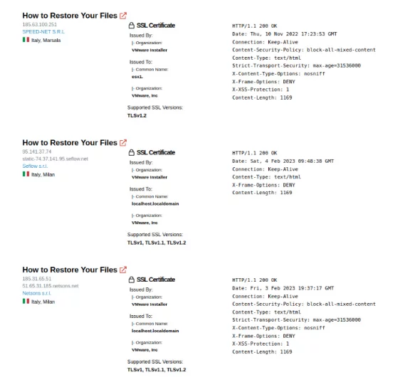 Facendo una ricerca su Shodan, è possibile già rilevare i server che sono stati crittografati nell’attacco ransomware.