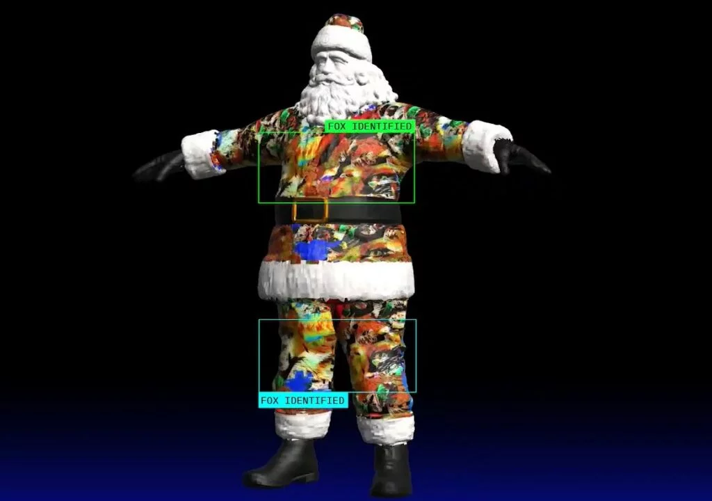 Essendo il mondo di oggi pieno di telecamere oggi, Babbo Natale ha indossato un abito (e anche più di uno!) con un motivo mimetico. Tali vestiti progettati dalla Amplify, gli hanno consentito di aumentare la sua privacy in un mondo di intelligenza artificiale.