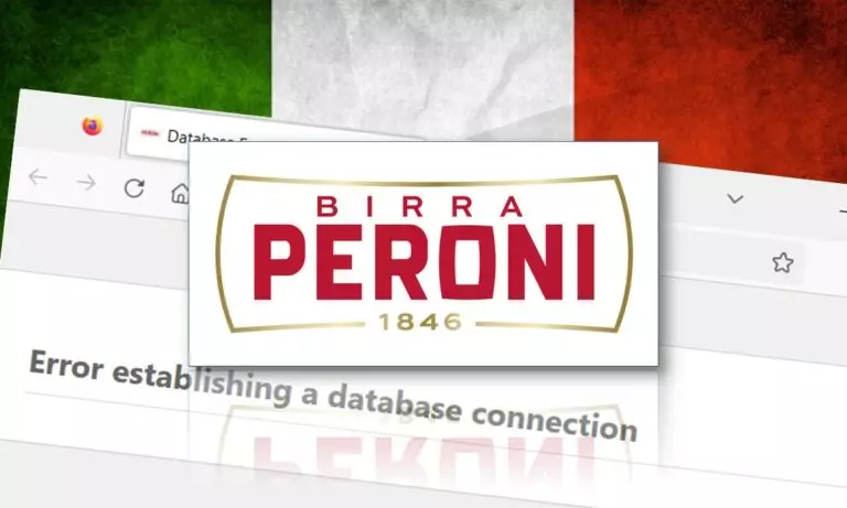 L’utente incuriosito ha acceduto al sito della Birra Peroni, ma purtroppo il sito mostrava un errore che riportava “Error establishing a database connection”. Tale errore è durato per molte ore ripristinato questa mattina.