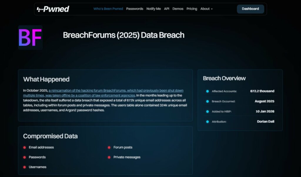 Per le organizzazioni che in passato hanno visto i propri dati comparire su BreachForums, il nuovo dump offre la possibilità di arricchire le indagini: incrociare gli indirizzi email e gli alias presenti nel database con incidenti pregressi può aiutare a ricostruire meglio filiere di vendita e riuso dei dati rubati. Strumenti come “Have I Been Pwned”, che ha già catalogato il breach, permettono alle aziende di verificare in modo rapido l’eventuale esposizione degli indirizzi email aziendali utilizzati sul forum.