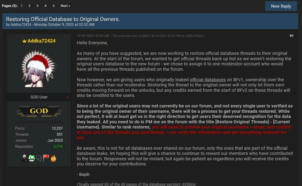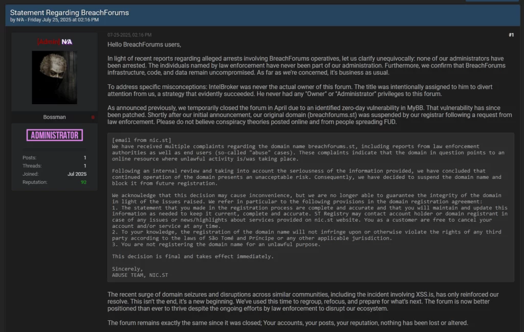 Per rafforzare la fiducia dei circa 340.000 membri registrati, BreachForums ha introdotto un “sistema di moderazione rinnovato” e ha promesso aggiornamenti costanti sulla situazione legale che coinvolge la piattaforma. Nel messaggio si accenna anche a “cambiamenti nelle prossime settimane” pensati per aumentare la trasparenza, anche se diversi analisti del settore ritengono si tratti solo di una mossa di facciata.