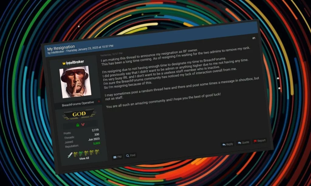 IntelBroker, figura nota e rispettata all’interno della community di BreachForums, ha annunciato la sua dimissione dal ruolo di amministratore con un post pubblicato il 23 gennaio 2025. Questo annuncio mette in luce un problema spesso trascurato, ma sempre più attuale: il bilanciamento tra vita privata e “lavoro”, anche all’interno di contesti non tradizionali come quelli legati al cybercrime e alla cybersecurity.
