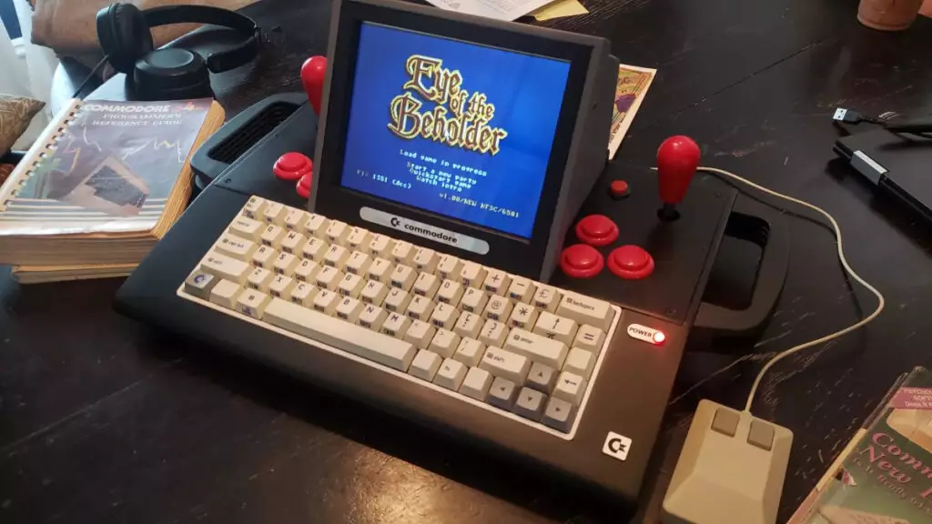 Una tastiera meccanica a 68 tasti (interruttori marroni Gateron) è incorporata nella custodia che sembra presentare copritasti personalizzati con facsimili di caratteri PETSCII (PET Standard Code of Information Interchange).