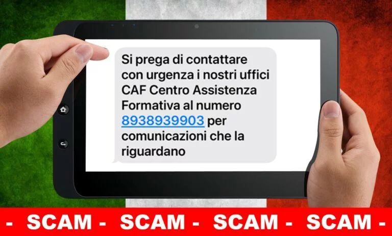 «Si prega di contattare con urgenza i nostri uffici CAF Centro Assistenza Formativa al numero 8938939903 per comunicazioni che la riguardano»