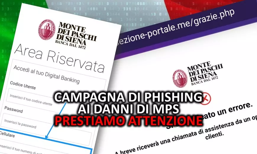 Rilevata una campagna di phishing ai danni di obiettivi bancari italiani, tra i quali il Monte dei Paschi di Siena (MPS).
