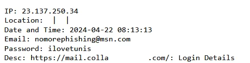 All’interno dell’allora file “emails.txt”(il file viene sovrascritto ogni giorno con nuove credenziali raccolte nell’arco della giornata), il segnalante ha trovato un indirizzo IP che, una volta analizzato, è risultato essere riconducibile alla Tunisia