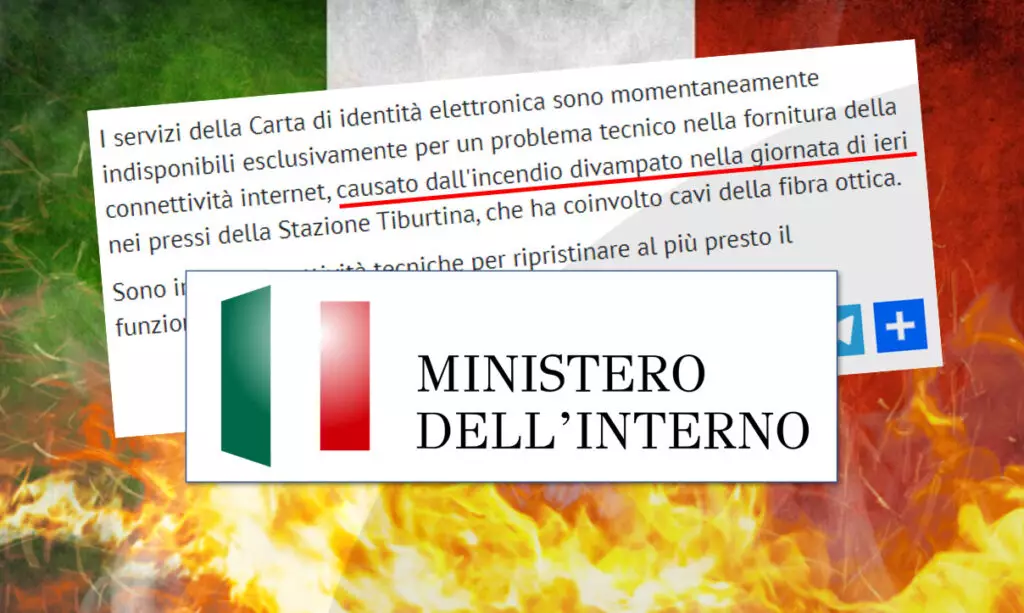 Da quanto sappiamo e dalla dichiarazione del Ministero dell’Interno “I servizi della Carta di identità elettronica sono momentaneamente indisponibili esclusivamente per un problema tecnico nella fornitura della connettività internet, causato dall’incendio divampato nella giornata di ieri nei pressi della Stazione Tiburtina, che ha coinvolto cavi della fibra ottica”.