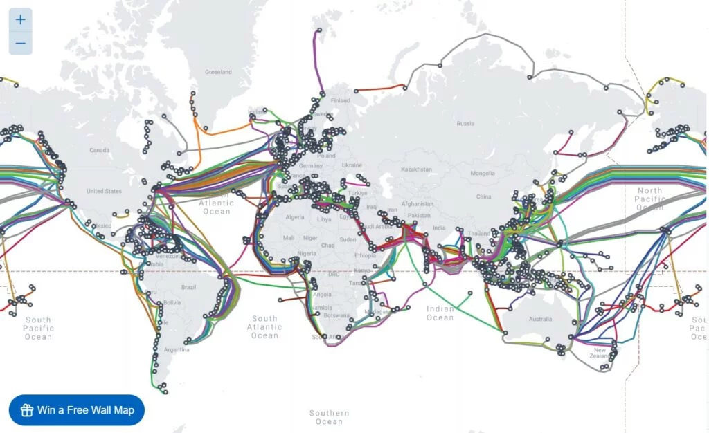 Dipende però anche da dove vivi. Nel giugno 2022, Asia-Africa-Europa 1, una linea Internet di 25.000 km che si snoda da Hong Kong alla Francia, ha subito un guasto, isolando milioni di persone da Internet per ore .