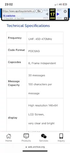Il modello “Gold Apollo Rugged Pager AR924” – tra i cercapersone esplosi – sarebbe della taiwanese Apollo System HK, collegata alla Gold Apollo Co. Ltd. L’azienda inizialmente ha affermato di non aver mai prodotto quel modello e di aver ceduto il marchio alla società ungherese BAC Consulting LTK. Sembra però che l’intera produzione di questo modello sia avvenuta in Cina “per conto di”, in effetti si poteva trovare facilmente sul sito web tramite Wayback Machine (vd. immagine), ora non più presente. E’ presente anche un canale Youtube che riporta il marchio Apollo System Hk, dove è possibile visionare la presentazione del modello. Circa 4000 unità di questo cercapersone sembrano essere esplosi contemporaneamente il 17 settembre 2024 (ore 15:30 locali). Prima di questa data Hezbollah Utilizzava da tempo i cercapersone regolarmente, per abitudine prima di tutto e sia per evitare la localizzazione e le intercettazioni anche tramite Spyware (es. Pegasus).