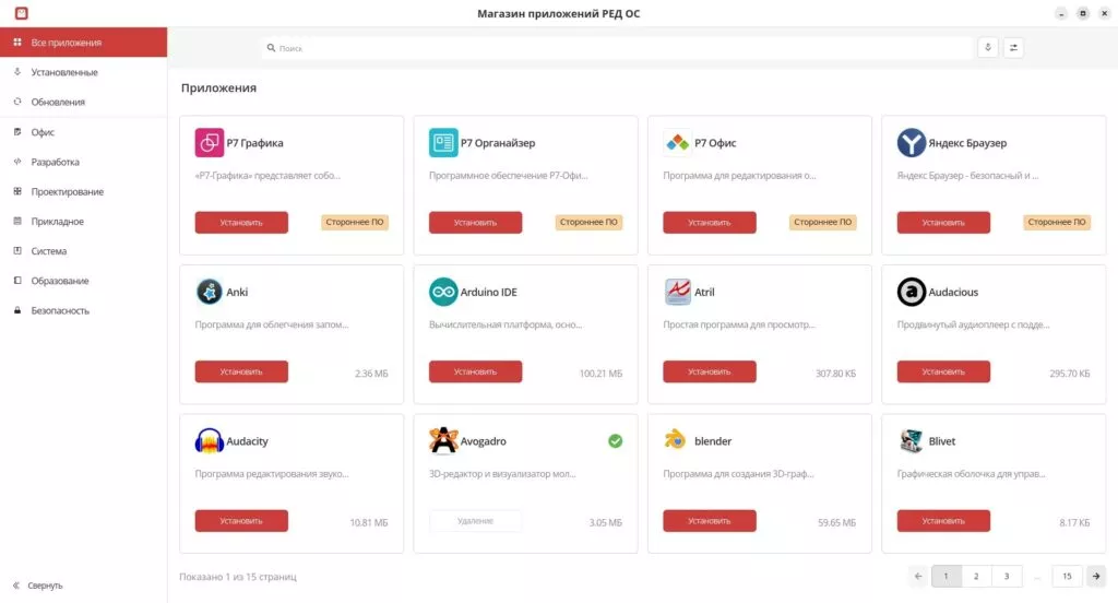 Le schede delle applicazioni offrono dettagli completi come a esempio le descrizioni in russo, screenshot, dimensioni. Da lì si gestisce tutto come i grandi App Store di Google e di Apple. Installazione, avvio, disinstallazione. Accesso diretto anche a risorse esterne come siti di progetto o articoli della Knowledge Base.