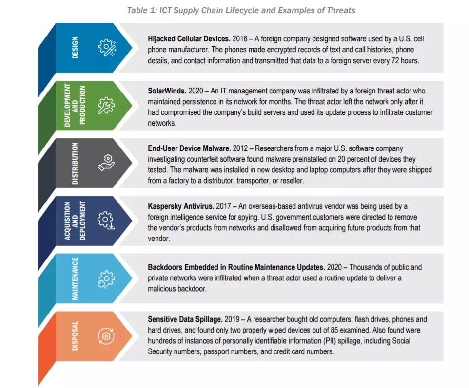 La Cybersecurity and Infrastructure Security Agency (CISA) e il National Institute of Standards and Technology (NIST) degli Stati Uniti, hanno rilasciato il documento Defending Against Software Supply Chain Attacks, che fornisce una panoramica dei rischi della catena di fornitura del software e raccomandazioni su come i clienti e i fornitori di software possono utilizzare il Cyber Supply Chain Risk Management del NIST (C -SCRM) e il Secure Software Development Framework (SSDF) per identificare, valutare e mitigare i rischi della catena di fornitura del software.