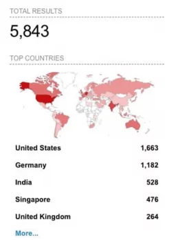 Utilizzando lo strumento di scansione Internet di Shodan , Rapid7 ha rilevato 5843 server CloudPanel che utilizzavano il certificato di sicurezza predefinito. La maggior parte di questi server si trova negli Stati Uniti e in Germania.