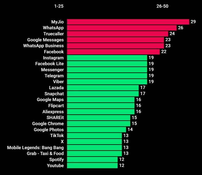 Da un’analisi di 50 app popolari su Google Play è emerso che, in media, un’app richiede 11 autorizzazioni pericolose. Tale accesso include il rilevamento della posizione, l’uso di una fotocamera, un microfono e l’accesso ai file dell’utente. Il leader nel numero di permessi è stato il servizio indiano MyJio, che richiede 29 accessi, inclusa la determinazione della posizione, l’accesso alla fotocamera, al microfono, al calendario e ai file.