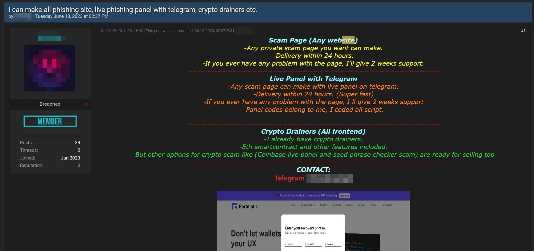 Oltre ai modelli di PaaS che abbiamo visto, sono presenti molti criminali informatici che offrono servizi per la realizzazione di siti fake altamente simili ai siti originali. Tali servizi vengono pubblicati nei forum underground come riportato nel post di seguito.